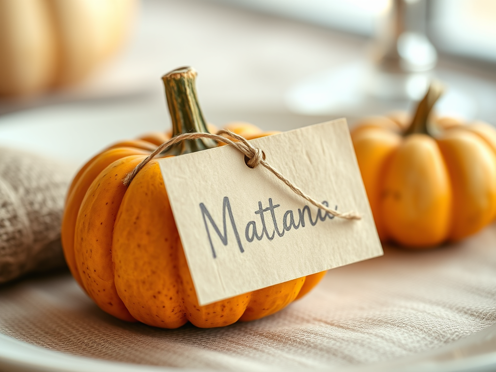 The Personal Touches: If it’s a seated dinner, handwritten place cards add a personal touch and make guests feel special. If you use place cards like these, you can use twine to tie them to a small seasonal token like a mini pumpkin, candle, or a bundle of herbs that doubles as a favor that guests can take home.