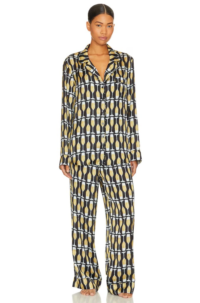 If the party is happening on your couch and the dress code calls for pajamas, wear your favorite set or try one of these gorgeous sets with festive details that are perfect for the occasion.