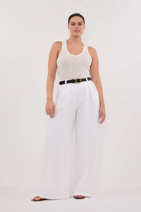 3. Black Tank + White Wide-Leg Trousers or Tailored Shorts+ Statement Sunglasses