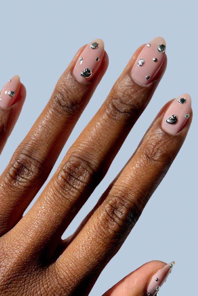 Embrace the mermaid-core trend with nails adorned with shells, stars, pearls, and shimmering finishes. These designs bring a touch of fantasy and whimsy to your fingertips.