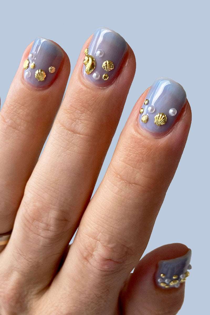 Embrace the mermaid-core trend with nails adorned with shells, stars, pearls, and shimmering finishes. These designs bring a touch of fantasy and whimsy to your fingertips.