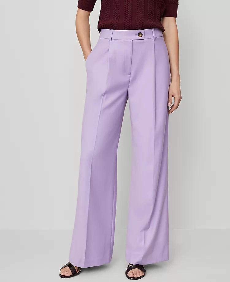 You can achieve a similar look with Naadam’s cashmere sweater, modern wide leg trousers by Ann Taylor, and these tiny diamond climber earrings.