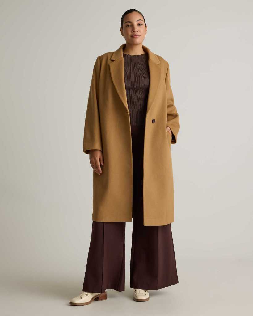 The Quince Italian Wool Coat and Ann Taylor Paisley Silk Scarf are great layering options for a classic look.