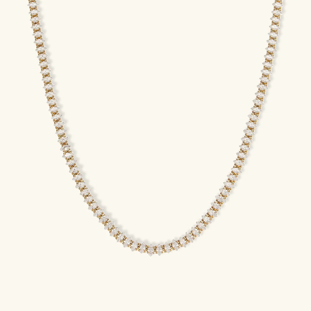 This striped button down from Express is similar and currently on sale. The Madewell Stovepipe jeans are a classic wardrobe addition. The Wisteria tennis necklace by Avaria is also on sale and under $100.