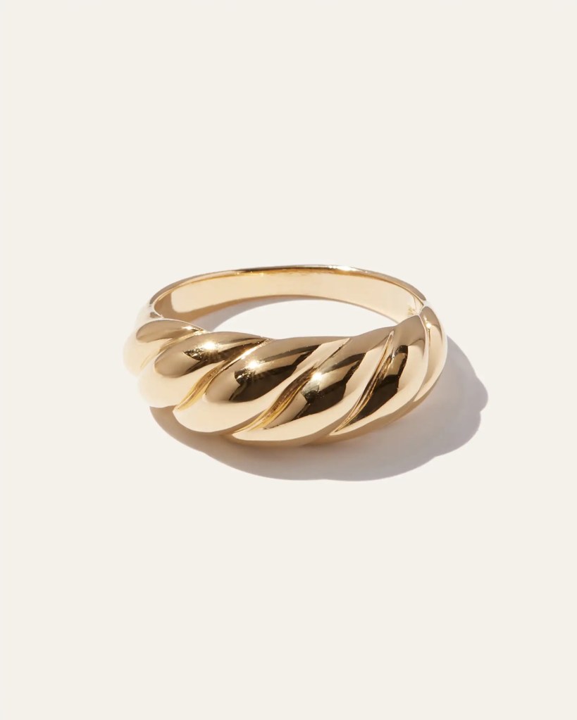 Bold, organic-shaped rings are trending—think molten metal finishes and stacked looks.