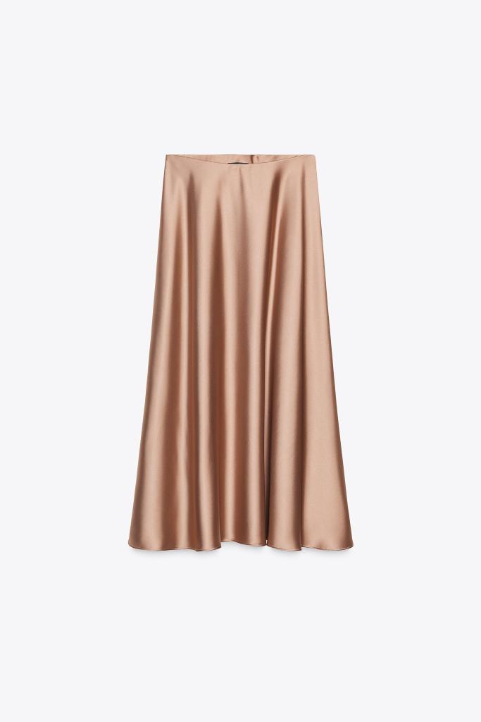 A soft turtleneck + satin midi skirt + long coat + ankle boots + top-handle bag