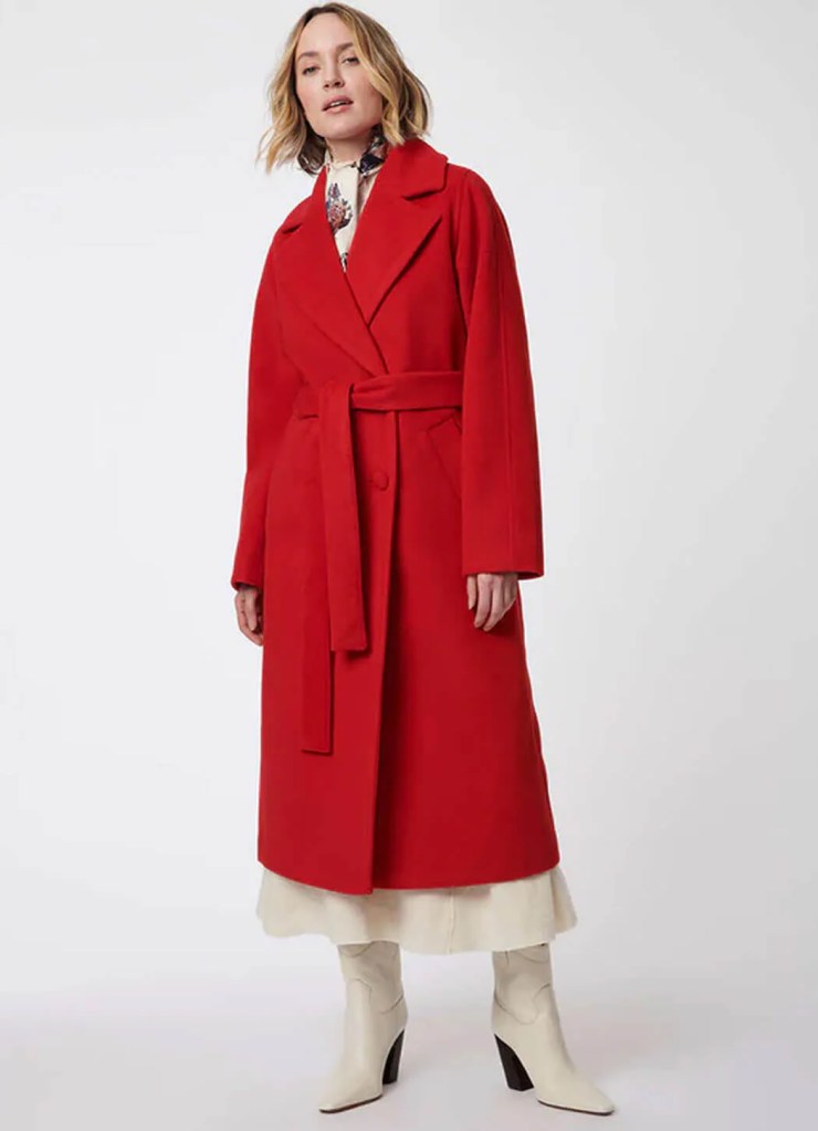A holiday movie heroine’s coat is everything. Look for long, tailored wool coats, belted wrap coats, faux fur-trimmed styles, or classic trench coats in thicker fabrics. The coat should feel like something you could dramatically button while stepping into falling snow. For more inspiration check out How to Pick the Perfect Investment Coat.
